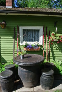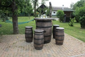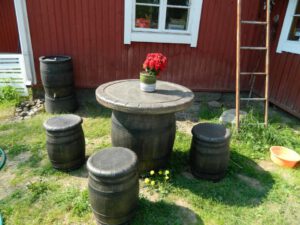 Tynnyrimiehellä ja vaimolla on omalla pihallaan näitä puutarhakalusteita ollut jo vuosia ja täytyy sanoa, etteivät tuotteet ole menneet miksikään, vaikka ne ovat olleet vuodesta toiseen pihalla ilman mitään suojauksia. Tammitynnyrisohvatuolilla on Tynnyrimiehen vaimon mukaan kiva istua iltaa ja itse Tynnyrimies tykästyi klubituoliin.